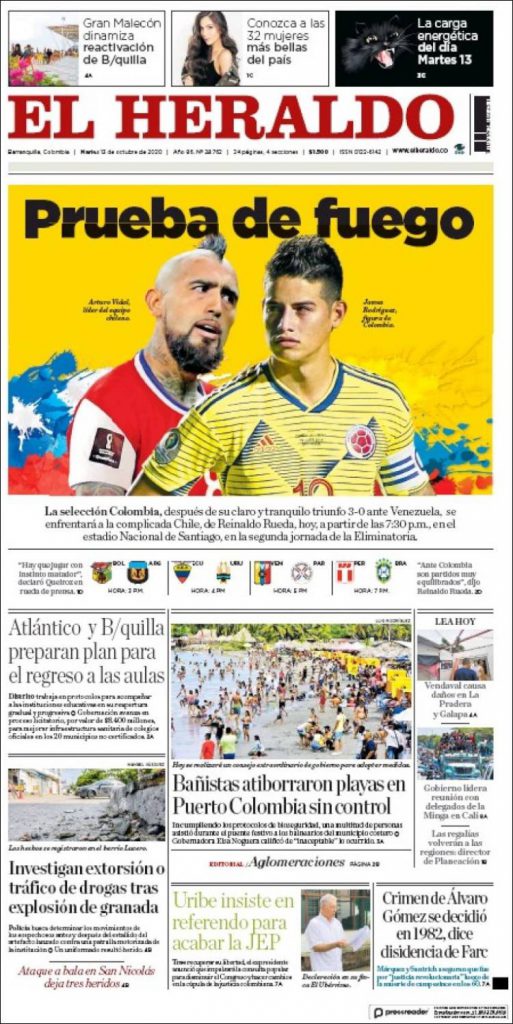 Duelo de Colombia contra Chile: Así abren algunos periódicos en el país