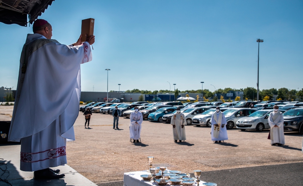 500 fieles, subidos en sus vehículos, se reunieron para una “misa móvil”