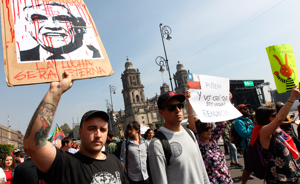 Cientos de chilenos marchan en México contra el Gobierno de Sebastián Piñera